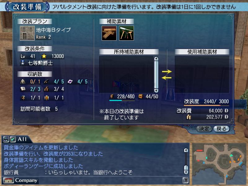 話は打って変わってアパルタメント。もうすぐランク3への改装が完了です。