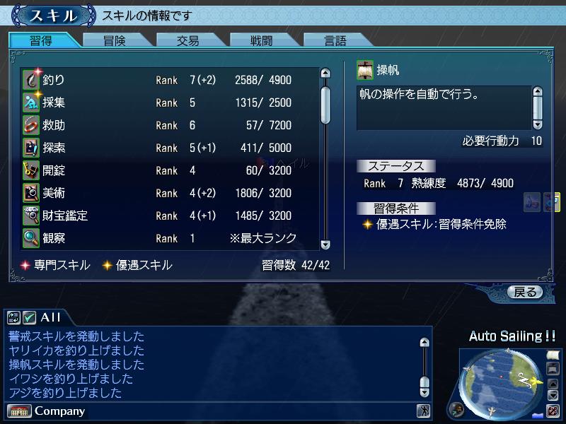 冒険・交易・戦闘を一手にこなす、広く浅くがモットーの超器用貧乏な航海者。